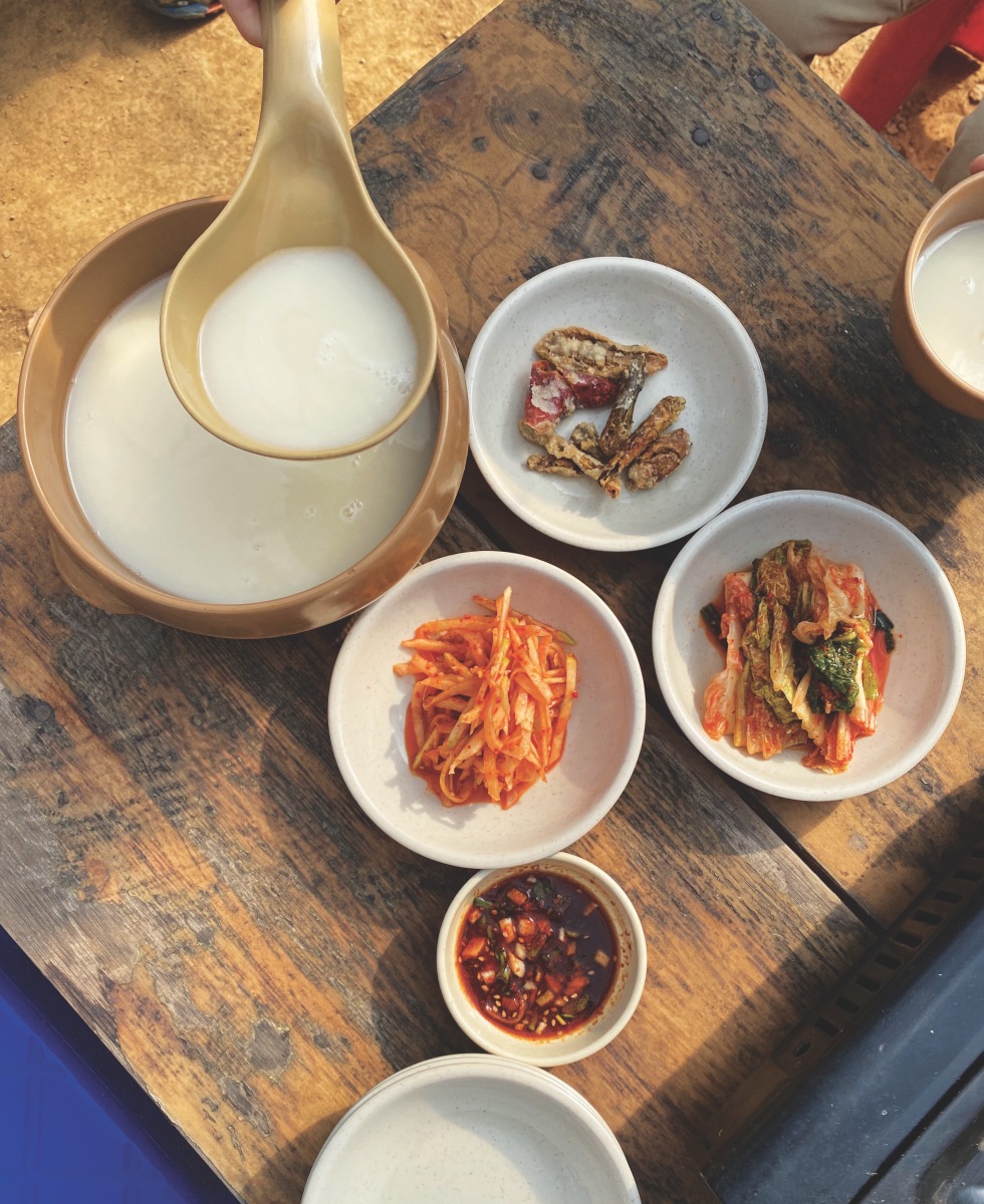 제천시 수산면에서 가장 높은 마을, 다불리가 마을맛여행의 시작점이다. 초입 안내문은 ‘총 5가구에 10명의 주민이 살고 있다’라고 알려준다. 고개를 하나 넘자 두무산 산골짝에 듬성하게 자리를 잡은 약초 텃밭들이 보인다. 가을걷이를 끝낸 풍경은 한적하다. 마을 산 중턱, 자드락길 6코스 길목의 ‘백봉산 주막’에서 마을맛여행의 첫 식사가 기다린다. 손두부와 부침개, 두루치기 그리고 막걸리. 알싸한 산초향이 담백한 두부에 약간의 감칠맛을 더해 금세 푸짐했던 접시가 비워진다. 이곳에서 십여 분만 걸으면 청풍호 전망대에 닿는데, 이 일대에서 가장 멋진 조망을 낚아챌 수 있다. 전망대를 다녀온 이라면 그 풍경을 좀 더 기억하고 싶어, 주막을 쉽게 지나칠 수 없을 듯하다.