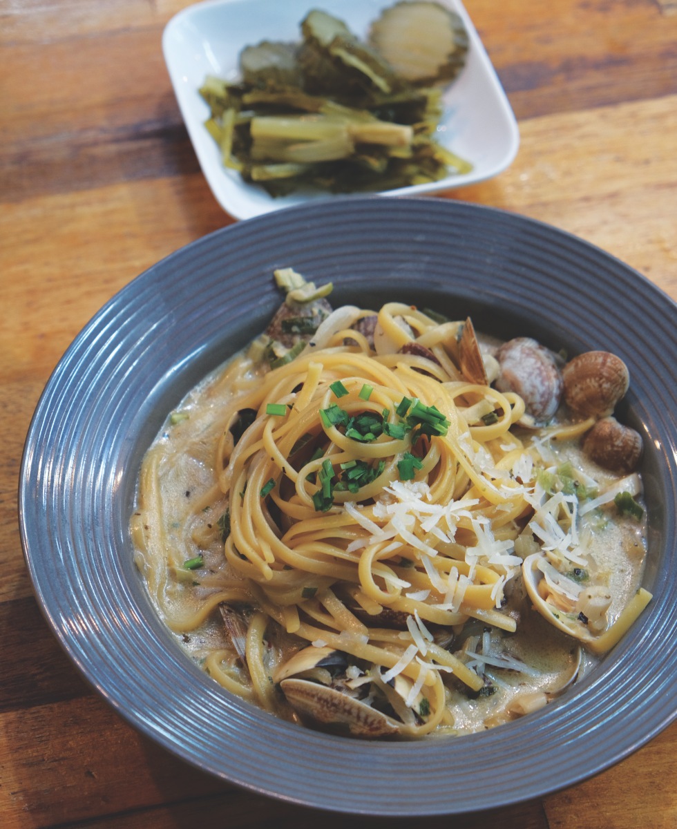 마을맛여행의 마지막 네 번째 식사를 덕산면 도전리의 ‘누리마을 빵카페’에서 차려 낸다. 월악산에 가는 장년의 여행객이 주로 드나드는 덕산면인데, 이 카페는 젊은 활기가 돌고 주말 점심 시간에는 자리가 꽉 찬다. 제천 간디학교 출신 청년 중에서 요리와 제빵을 업으로 삼을 이들이 모여 운영한다고. 지역 식자재로 만든 빵과 쿠키 그리고 파스타 위주의 식사를 먹을 수 있다. 어떤 메뉴를 주문하든 넉넉한 양과 충실한 맛으로 실망시키지 않는다. 환경과 공동체를 향한 적극적인 발언도 이곳에 더 많은 관심을 보일 수밖에 없는 이유다.