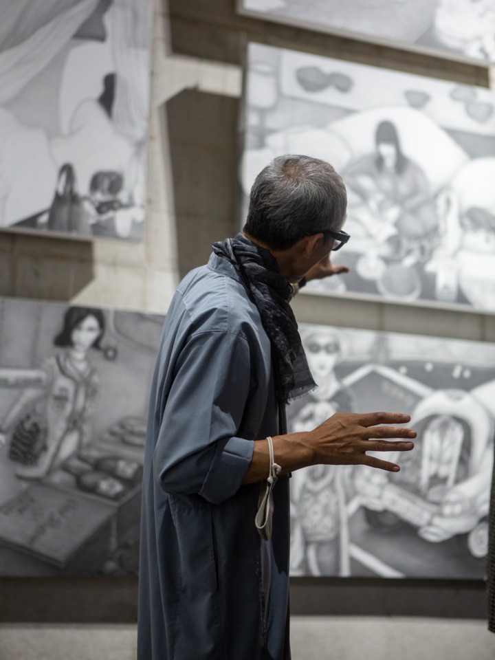 오후 2시. 라드라비 아트 앤 리조트의 카페에는 몇 명의 손님이 여유롭게 창밖을 바라보고 있다. 늦더위의 햇살은 건물이나 나뭇가지 사이 틈으로 헤집고 들어오며 반사된다. 갤러리에서 유심히 작품의 설명을 듣던 한 무리의 손님이 떠났다. 화려하지 않지만 화려하고, 소박하지 않지만 소박하고, 오래된 듯하지만 오래되지 않은, 이 공간의 분위기는 이상일 작가를 닮을 수밖에 없다. 프라이빗 빌라, 갤러리, 카페, 레스토랑, 멀티 플렉스, 작업실 그리고 정원과 정자. 오픈한 지 얼마 안 된 곳이지만, 시간의 흐름이 곳곳에 스며들어 있다. 호리호리한 체형에 도포 휘날리듯 외투 자락과 스카프를 날리며 성큼 걷던 작가는 카페의 푹신한 소파에 누울 듯 기대어 앉는다.