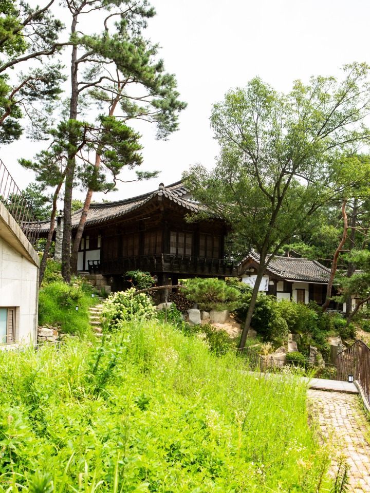 공사는 2년 만에 다 끝냈죠. 2015년에 완공했어요. 나머지 시간은 숙성의 시간이었어요, 숙성시키는 김에 코로나가 와서 더 숙성됐고. 저 계단도 다 제가 돌칼로 자르고 망치로 다듬어서 손맛 나게 만든 거예요. 한옥이 오래된 것처럼 보이잖아요. 그것도 옛날에 지은 게 아니에요. 들기름을 계속 발라서 만들었죠. 한옥에 살면서 종갓집 할머니들의 이야기를 귀동냥으로 듣고 직접 해보면서 느끼고 배운 거에요.