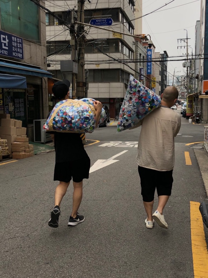 엄밀히 말하면 ‘병뚜껑 재활용’에도 허점이 있어요. 병뚜껑만 따로 수거해서 재활용할 경우 상대적으로 페트병 재활용율은 낮아지거든요(기본적으로 페트병은 병뚜껑을 닫아서 분리 배출해야 한다). 또 쓰레기 재활용보다 생산 공장에서 발생하는 폐기물 문제가 더욱 시급하기도 하고요. 사실 플베의 수명은 애초에 정해져 있었어요. 진입 장벽이 낮기 때문에 다른 사람도 얼마든지 시도할 수 있는 분야죠. 플베를 시작할 때, 저희보다 먼저 와플 기계로 플라스틱을 찍어봤다는 사람도 있었거든요. 이제 병두껑 말고 다른 소재로 옮겨갈 단계라고 생각해요. 요즘 생각하고 있는 건 유기농 물질이에요. 유기물질을 연구하는 한편, 플베가 그간 쌓아온 제작 기술을 시스템화해 다양한 콘텐츠로 보여주면 어떨까 해요.