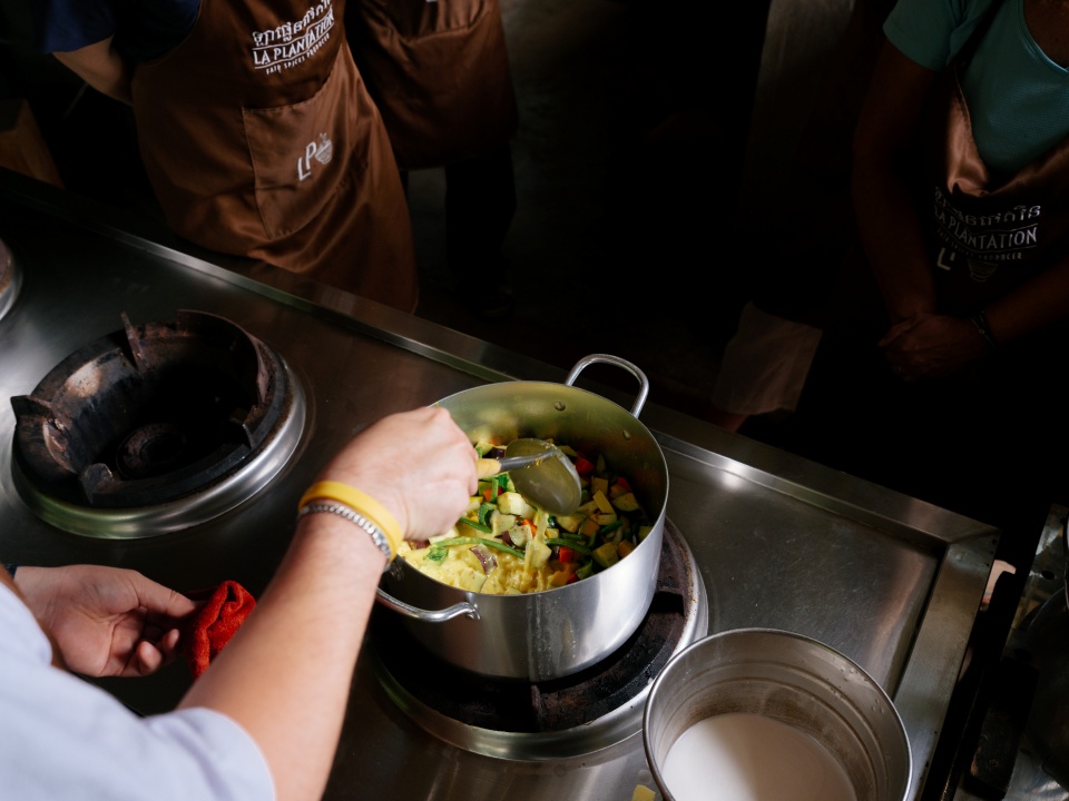 그들은 채소를 씻고, 다듬고, 칼질을 하고 있었다. 반짝거리는 금속제 조리 도구가 밖에서 비치는 프놈펜의 햇빛을 받아 반짝거렸다. 나는 이렇게 말했다. “우리는 아주 잘 먹을 수 있을 거 같아요.”