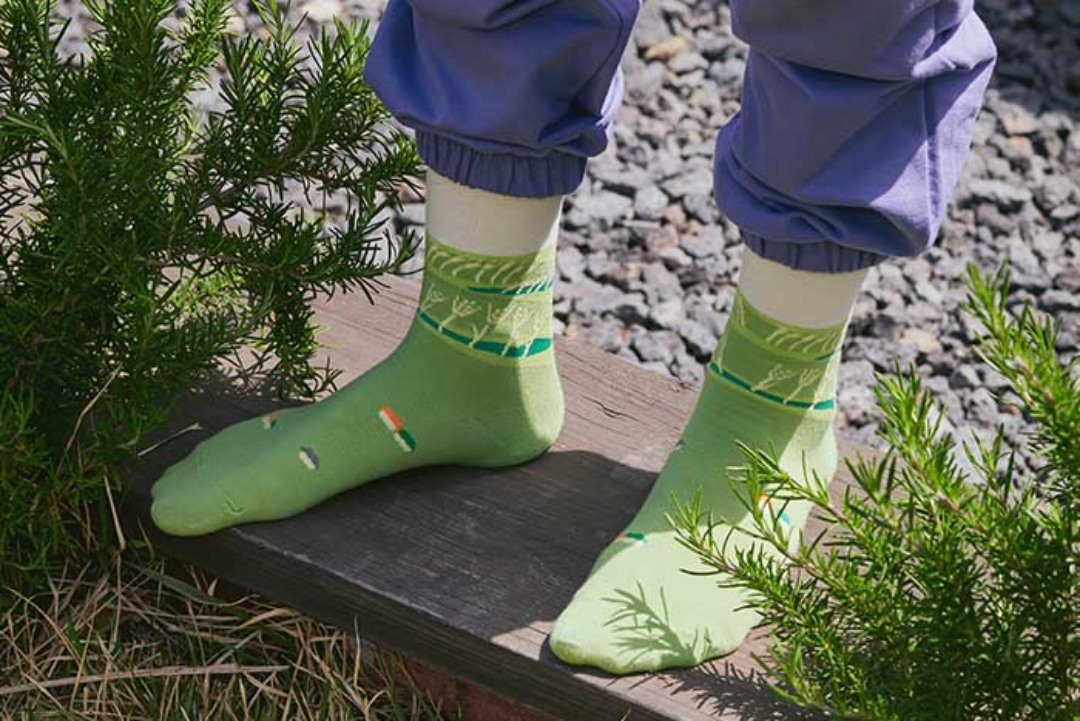 양말의 재질을 공부하다 보니 주 소재가 면이라는 사실을 알게 되었어요. 그런데 면화 재배가 전 세계 농작물 경작지의 2퍼센트 정도밖에 안 되는 규모임에도 불구하고, 과다한 농약과 살충제로 문제가 되고 있더라고요. 면보다 더 나은 대안은 없을까 고민하던 중, 유기농 재배 방식으로 생산한 면이 있다는 걸 알게 되었어요. 물론, 유기농 면은 단가도 더 비싸 생산 기간도 더 오래 걸려요. 제작 과정에서도 여러 난항이 예상되었지만, 환경과 동물 그리고 사람의 피부에 해를 덜 끼치니까 결국 유기농 면을 사용하기로 했죠.