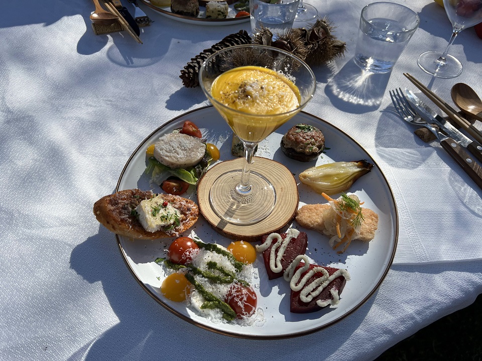 나가노현 다테시나 시라카바코 호수 절경을 바라보며 즐기는 프라이빗 다이닝 체험입니다. 인근 지역인 시모스와(下諏訪) 마을의 와인숍 '유다사카 이와이도 사케점(湯田坂 岩井堂酒店)'을 운영하는 소믈리에가 호스트가 되어, 야츠가타케의 식재료를 이용한 원플레이트 요리와 '신슈(信州) 와인 밸리'를 구성하는 현지 나가노현의 와인과의 페어링을 즐길 수 있습니다.